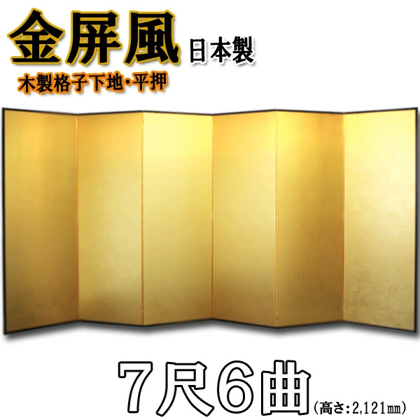 金屏風 国産 本格派金屏風 7尺6曲 (木製格子・洋金平押) – 圧倒的な存在感と華やかさで和の空間を彩る【送料無料】【日本製】