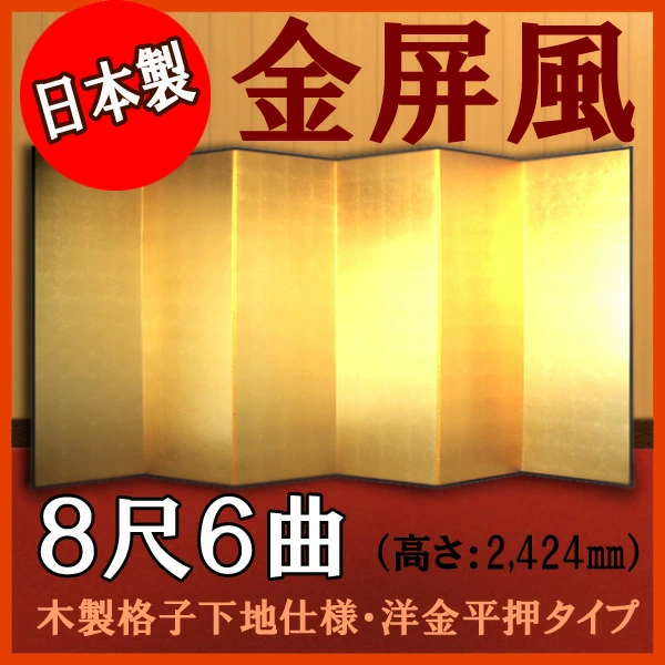 金屏風 8尺6曲 国産 本格派 – 木製格子・洋金平押 | 式典装飾に【送料無料】